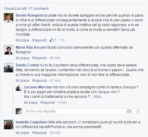 Irregolarità raccolta rifiuti, annuncio multe, polemica sul web