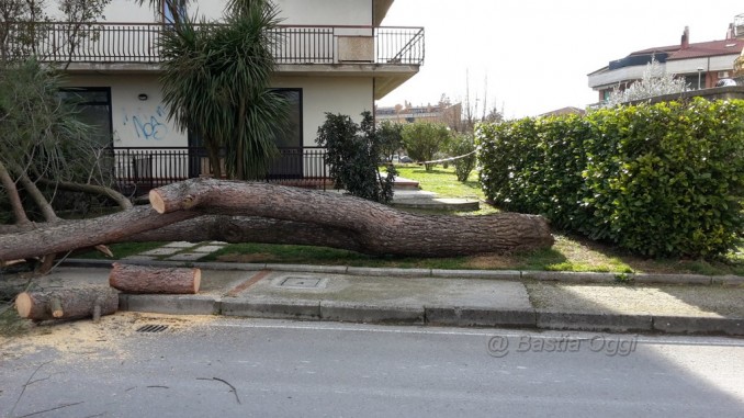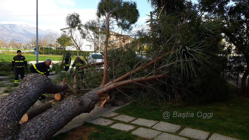 La pianta si è schiantata a terra. I pini marittini – da quanto abbiamo appreso – soffrono di una malattia che danneggia le radici, fino a determinare il distacco da esse e il cedimento della pianta. I pini marittimi, lo dice il nome stesso, non sono fatti per stare in città. Varie piante di questo tipo sono presenti a Bastia, conoscendo la natura di questa pianta, rischiano di schiantarsi da un momento all’altro. Andrebbe fatta un’opera di bonifica comunale per togliere le piante che sono a rischio. Un pino marittimo cadde qualche anno fa anche in Via Roma.