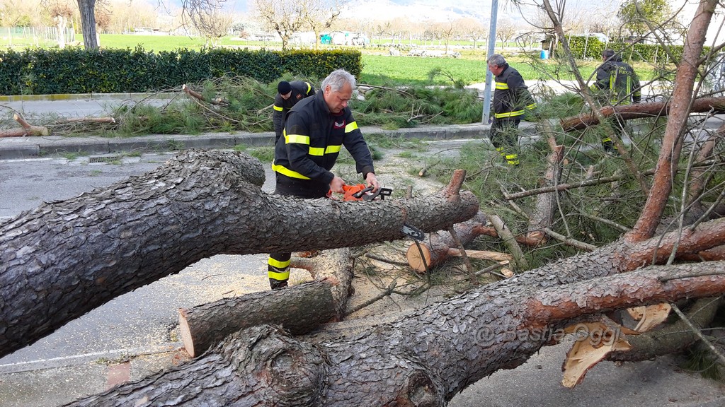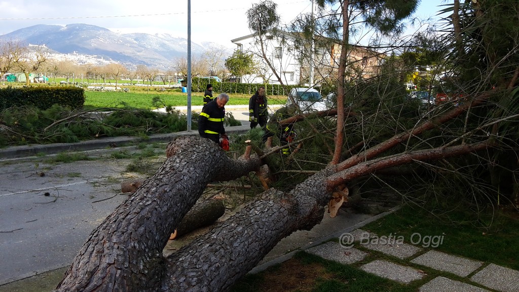 Il maltempo e il forte vento delle ultime ore sta imperversando su tutta l’Umbria. Danni anche a Bastia Umbra dove un grosso pino marittimo si è schiantano in via Foligno, tagliando la strada in due. Lo si apprende dalla Polizia municipale bastiola. Il fatto è successo intorno alle ore 13 del 6 marzo 2014. Sul posto i vigili del fuoco che hanno provveduto alla rimozione della pianta.