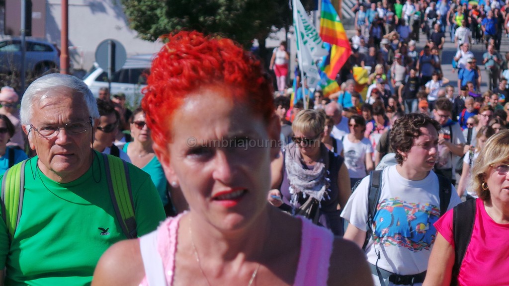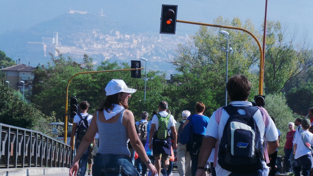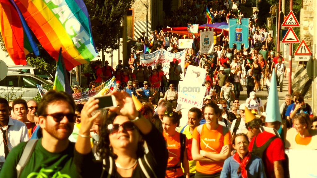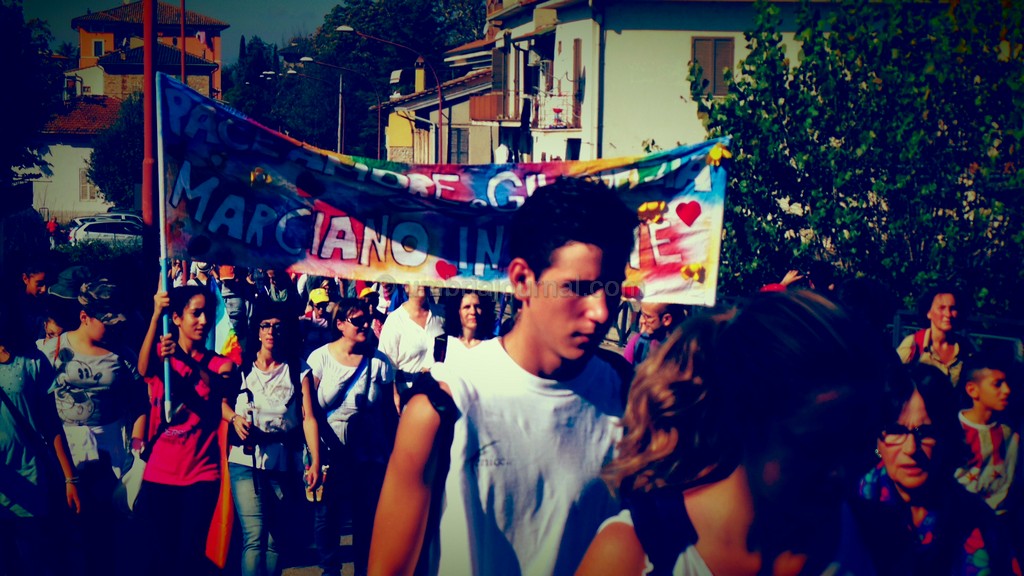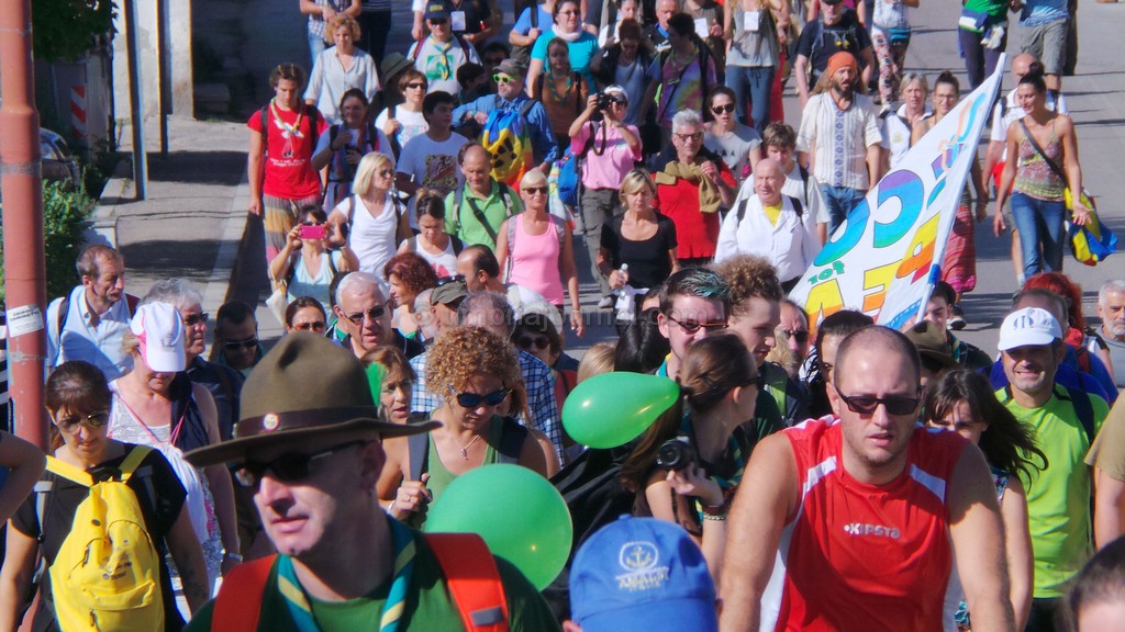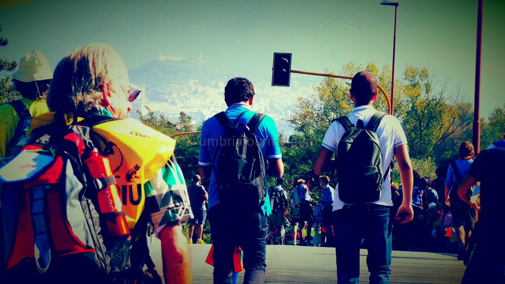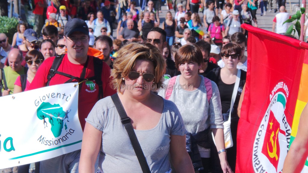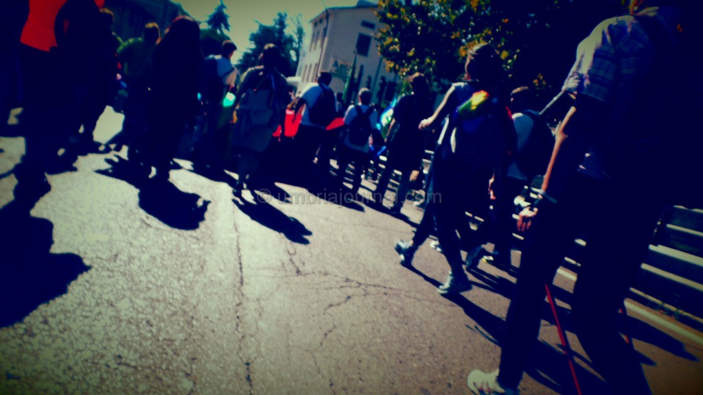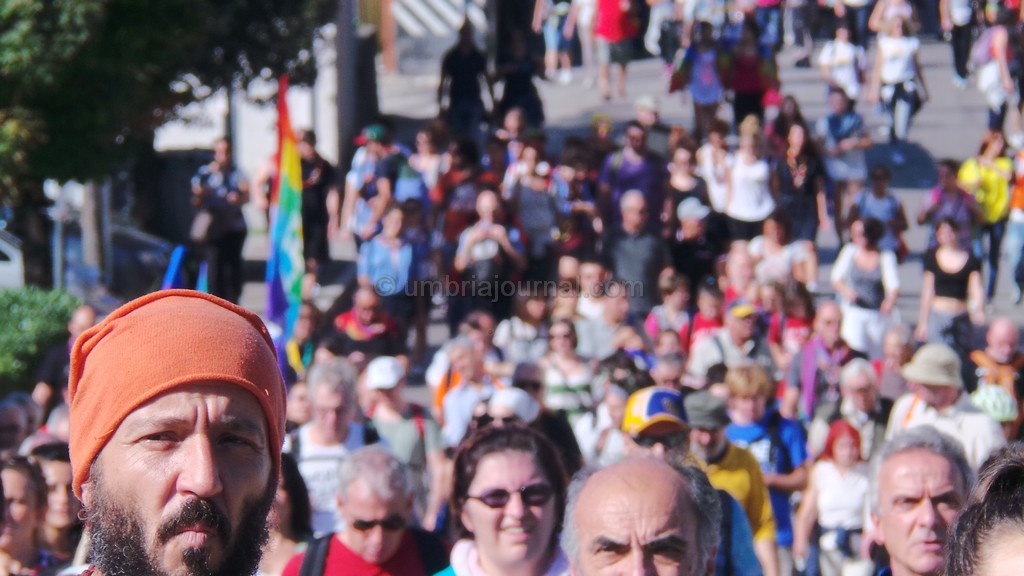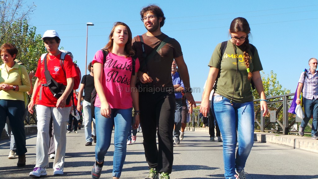 Tantissimi i giovani presenti. Dal primo mattino erano già molte le persone pronte per la Marcia della Pace. A Perugia si è formato il corteo in marcia alla volta di Assisi. Gli organizzatori parlano di cento mila persone.