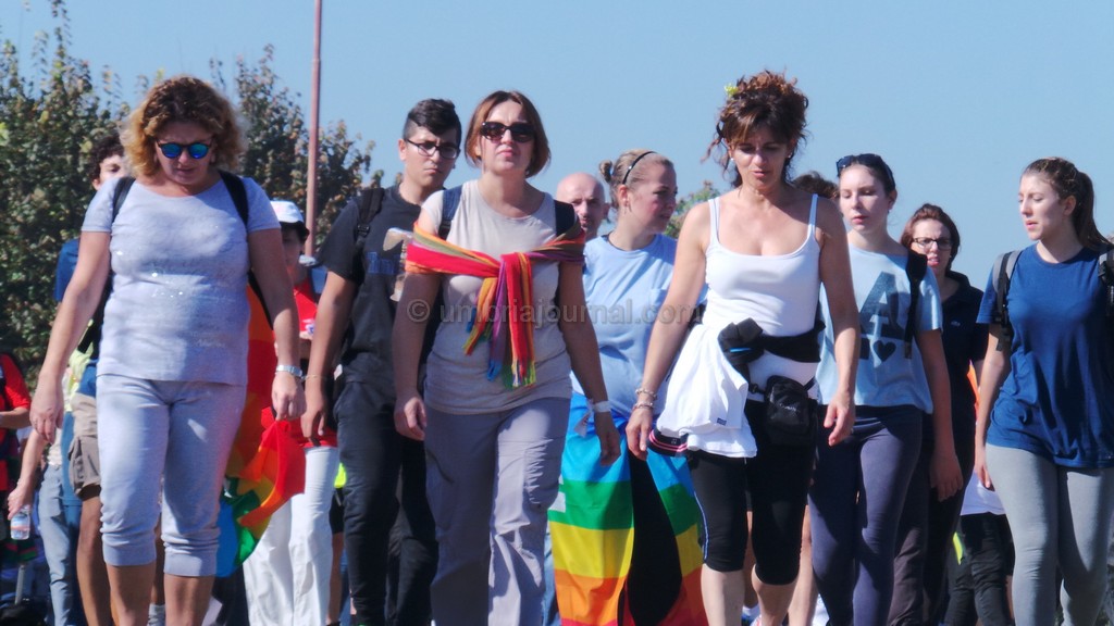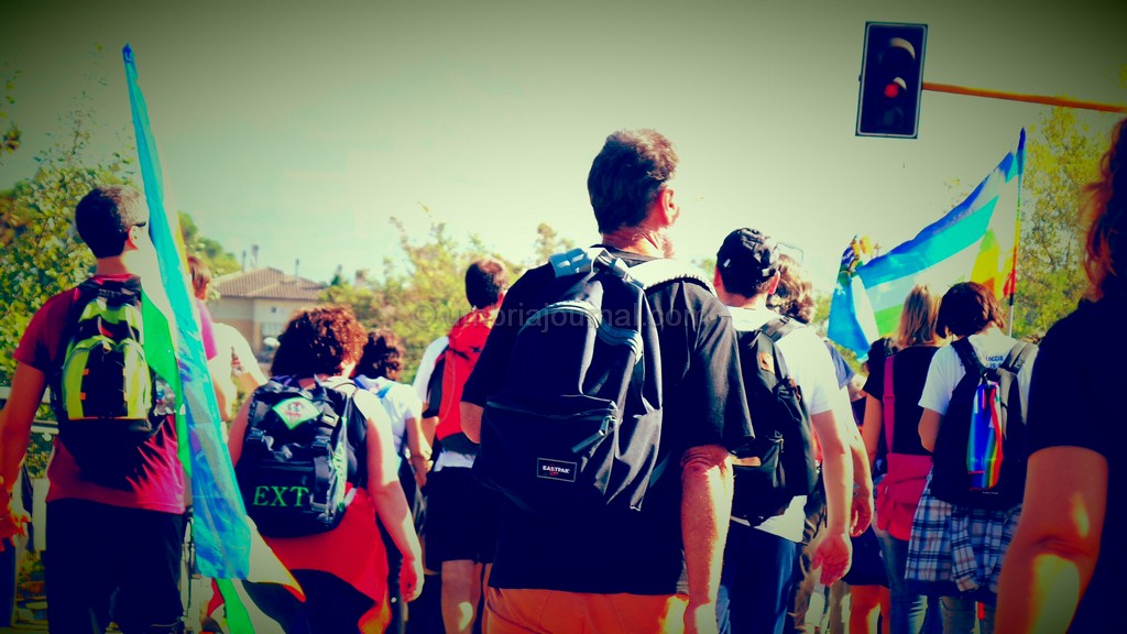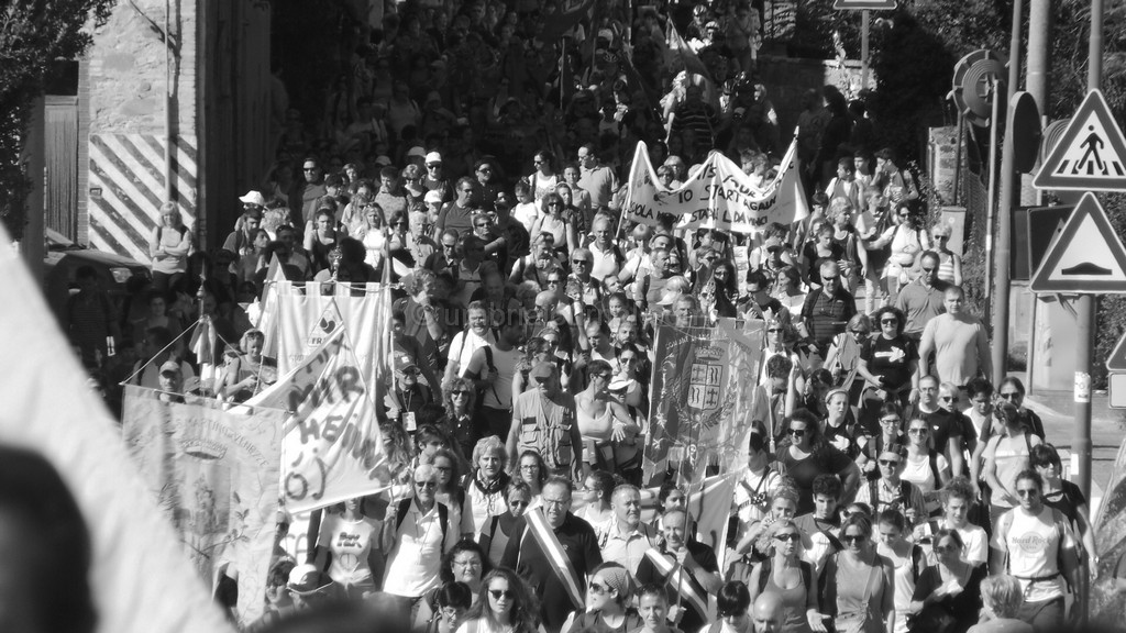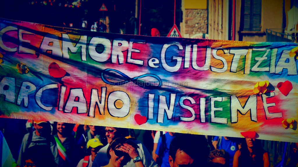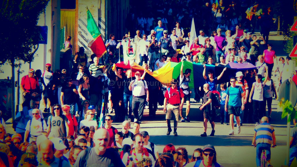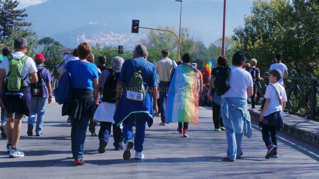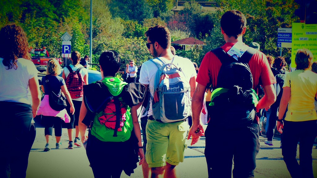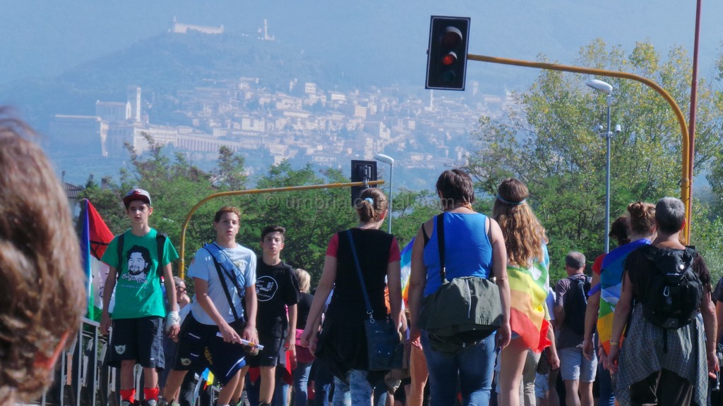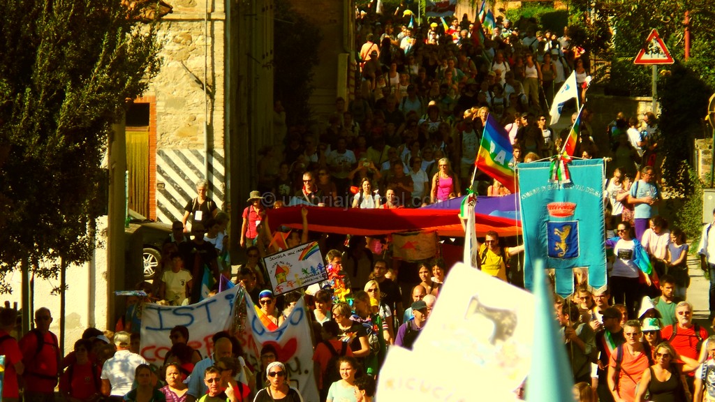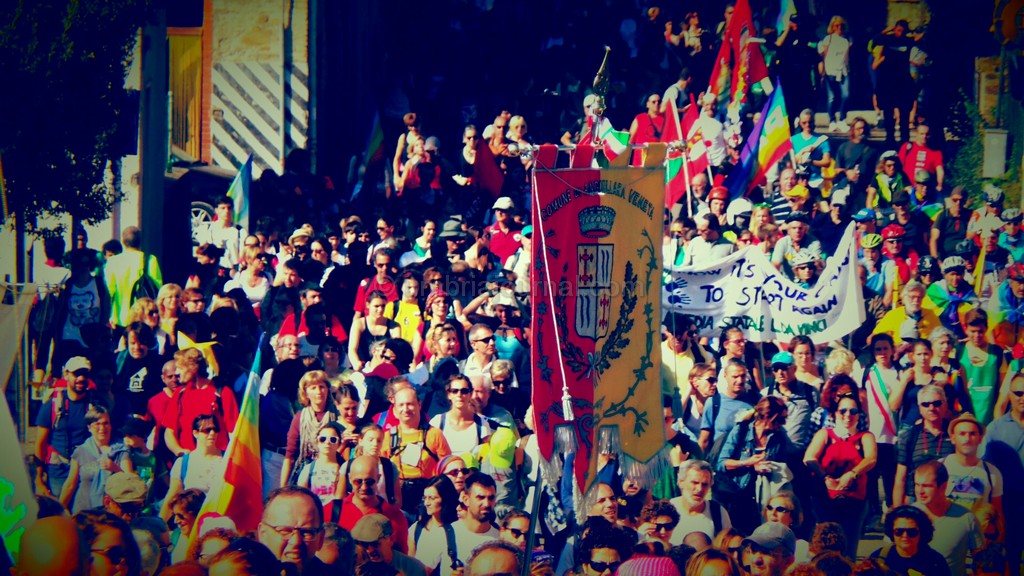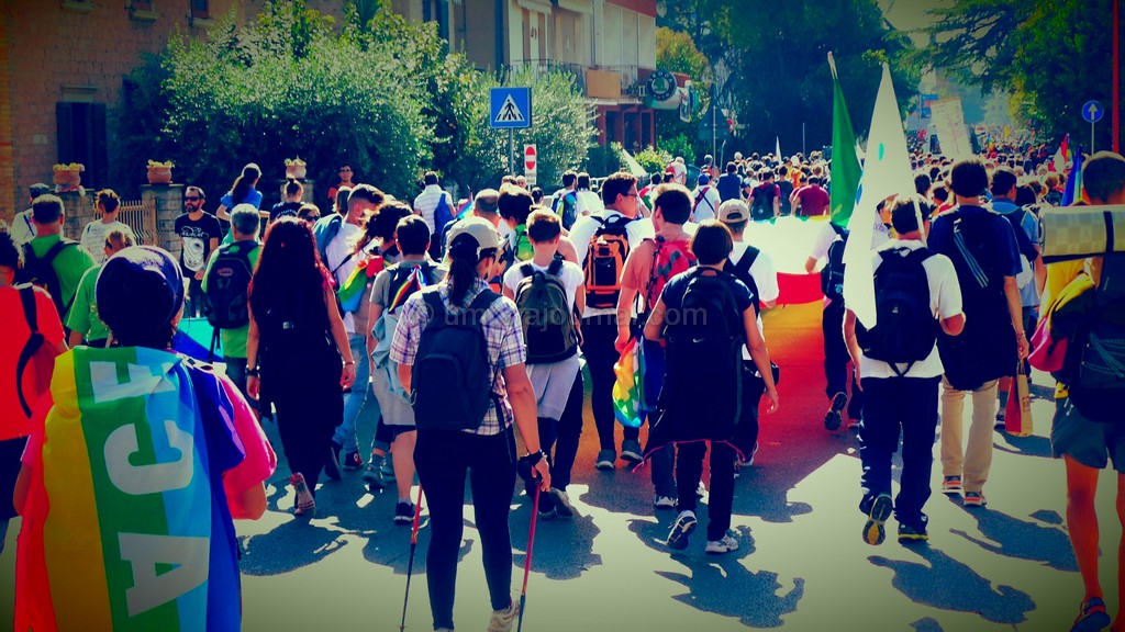 Tantissimi i giovani presenti. Dal primo mattino erano già molte le persone pronte per la Marcia della Pace. A Perugia si è formato il corteo in marcia alla volta di Assisi. Gli organizzatori parlano di cento mila persone.