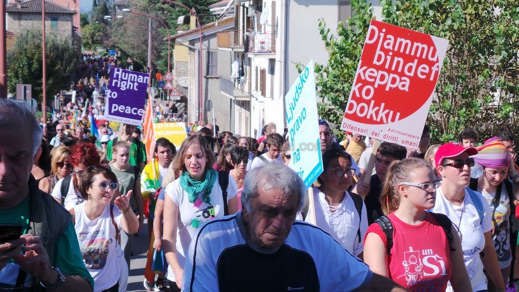 Quello della Marcia Perugia – Assisi “e’ un popolo bellissimo, ed e’ come stare in una parte di Italia che crede nei valori della fratellanza, della pace e che dice no alla guerra, anche a quella in nome di Dio: una strumentalizzazione inaccettabile, contro la quale tutti quanti ci dobbiamo schierare capendo bene che oggi i primi ad essere colpiti da questo uso strumentale di Dio sono proprio coloro di fede musulmana che sono guardati in cagnesco da chi vede in loro potenziali terroristi”. Cosi’ la presidente della Camera Laura Boldrini, a margine della Marcia della Pace. “Oggi siamo qui per dire che la pace e’ un valore importante e per dirlo tanto piu’ in un tempo in cui i venti di guerra sono tutti intorno a noi – ha detto – noi vediamo tutti i giorni le conseguenze della guerra sulle nostre coste. Tante delle persone che rischiano la vita in mare fuggono da paesi in guerra. Chi accetta la roulette russa del Mediterraneo e’ quasi sempre perche’ non ha il privilegio di avere la pace a casa propria. Sono le prime vittime del terrorismo, del fanatismo e della violenza”.