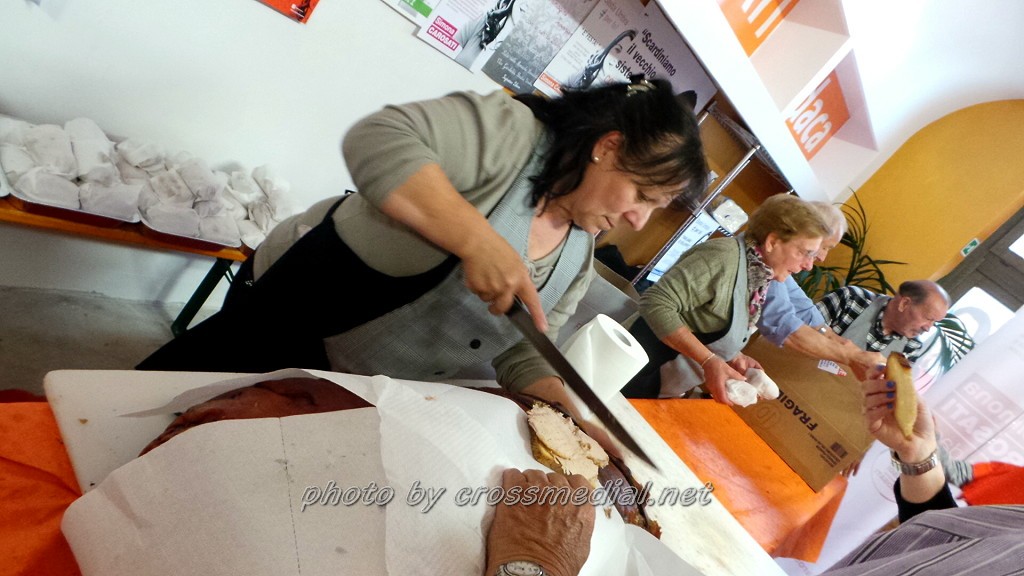 Più che una passeggiata sembrava un accompagno. L’anonimo corteo si è diretto tra ali di folla a S. Lucia, per proseguire a fatica sempre tra la folla, come i ciclisti in salita al giro d’Italia a XXV Aprile, terza tappa Bastiola, quarta tappa Borgo I° Maggio, e infine l’arrivo in volata a Piazza Mazzini, premio della fatica il COLESTEROLO servito dai pupari.