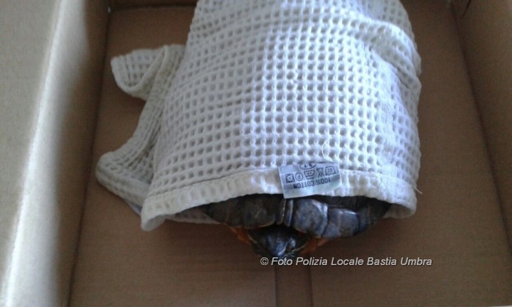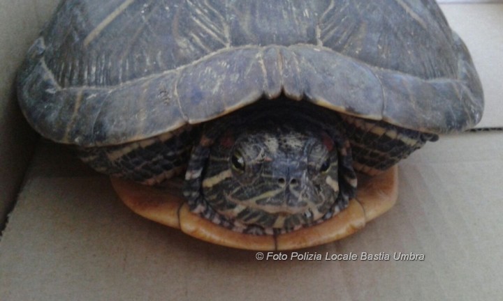 Il tenente Claudio Balducci e l’appuntato Cristiana Porrozzi, della Polizia locale di Bastia Umbra, hanno salvato una tartaruga d’acqua. Gli ufficiali, del maggiore Carla Menghella, sono stati chiamati questa mattina, attorno alle 11, in quanto, davanti ad una agenzia di viaggi in via Vietnam, c’era il piccolo animale. Arrivati sul posto hanno preso la tartaruga e l’hanno portata subito dal veterinario. Il medico ha provveduto immediatamente a bagnarla e ad avvolgerla in un panno umido. Dopo questo intervento, decisamente indispensabile, l’animale sarà portato, dalla Polizia Provinciale, nel centro ittiogenico della Provincia di Perugia a San Feliciano del Lago Trasimeno. Sapere come la povera bestiola sia arrivata fin là non è cosa facile. Non è escluso che sia stata lasciata di proposito o, come è pure nella loro natura curiosa, la tartaruga si sia avventurata fuori dal proprio spazio. Ci auguriamo non sia stato una “vasca lager”! Fatto è che ora, grazie alla Polizia Locale di Bastia Umbra, l’animale è in sicurezza.