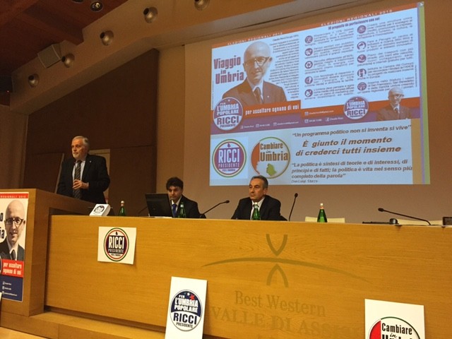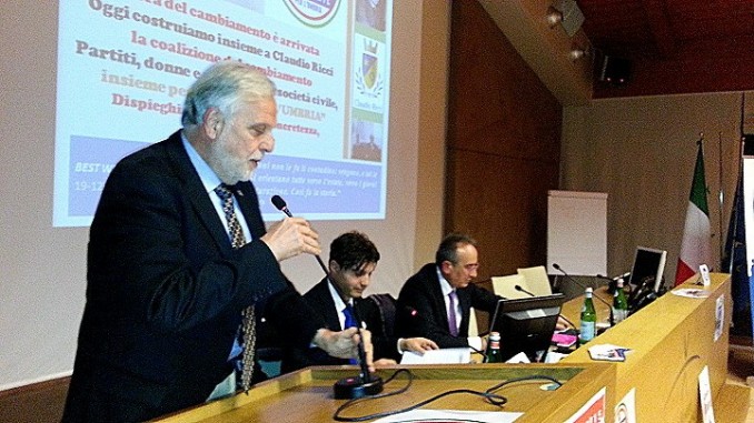 ASSISI – “Nei tempi difficili con poco vento occorre dispiegare le vele con concretezza, coraggio e cuore”. E’ l’egida sotto il quale parte ufficialmente la campagna elettorale di Claudio Ricci, candidato a presidente della Regione Umbria nel 2015. La convention si è tenuta venerdì pomeriggio presso il Best Western Valle di Assisi.