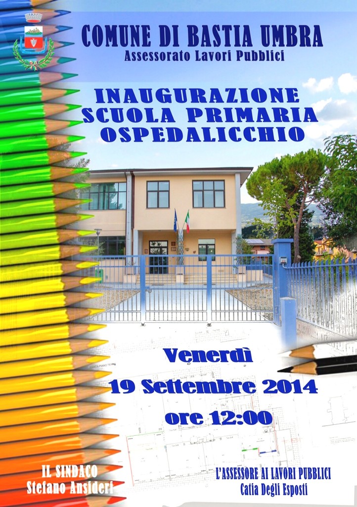 Venerdì prossimo 19 settembre, alle ore 12, ad Ospedalicchio di Bastia Umbra, il sindaco della città, Stefano Ansideri, e l’assessore al lavori pubblici, Catia degli Esposti, inaugureranno la scuola primaria del paese. Festa grande, quindi, per la comunità ospedalicchiense in occasione di questo grande evento che coincide, giorno più giorno meno, con le date in cui i “remigini” sono tornati tra i banchi per il nuovo anno scolastico. Alla cerimonia inaugurale interverrà l’assessore alle politiche scolastiche, Claudia Lucia.