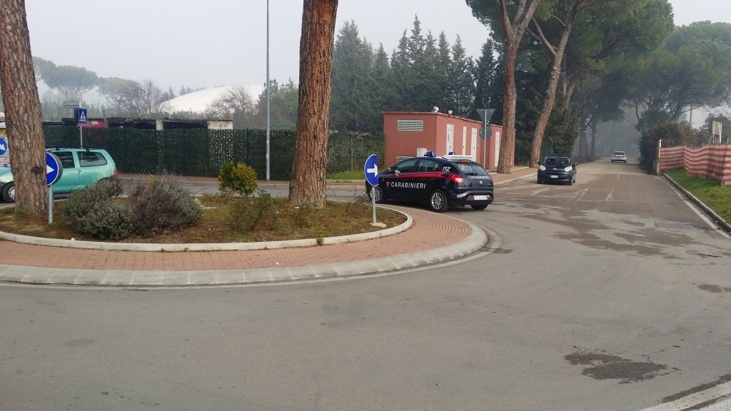 Riesce nell’intento di sfondarla, si abbassa entra nell’antispazio del caveau, ma, forse a causa della blindatura della cassaforte, forse anche perché disturbato, in quanto da viale Giontella (il caveau è in una via laterale che termina in un parcheggio ndr) stavano arrivando due persone, un uomo e una donna, molla il suo proposito e si allontana con il suo amico. L’allarme, come prevedibile, scatta immediato.
