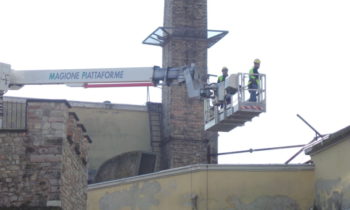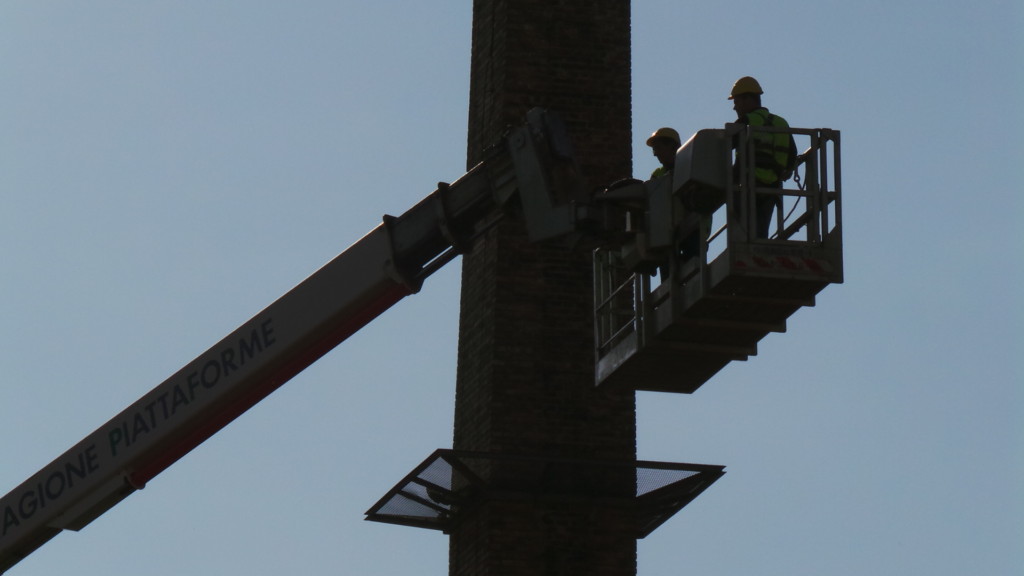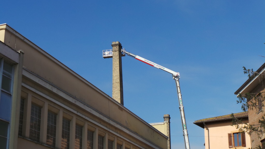 Serviranno 3 o 4 giorni per ribassarle, mattone dopo mattone. L’azienda che se ne occupa ha iniziato i lavori ieri mattina e proseguirà oggi e nei prossimi giorni fino al totale ribassamento previsto. La via con un’ordinanza emessa dal sindaco, Stefano Ansideri, è chiusa al traffico veicolare e pedonale e gli immobili prospicienti le due ciminiere sono stati sgomberati. Alcuni dei residenti sono stati ospitati dalle Sorelle del Monastero Benedettino di San’Anna.