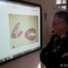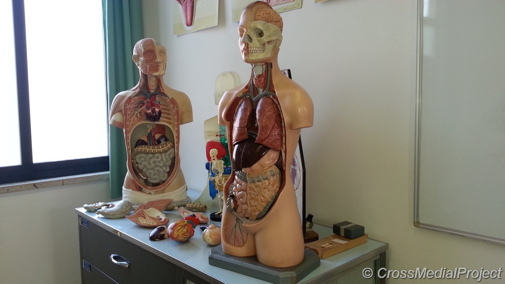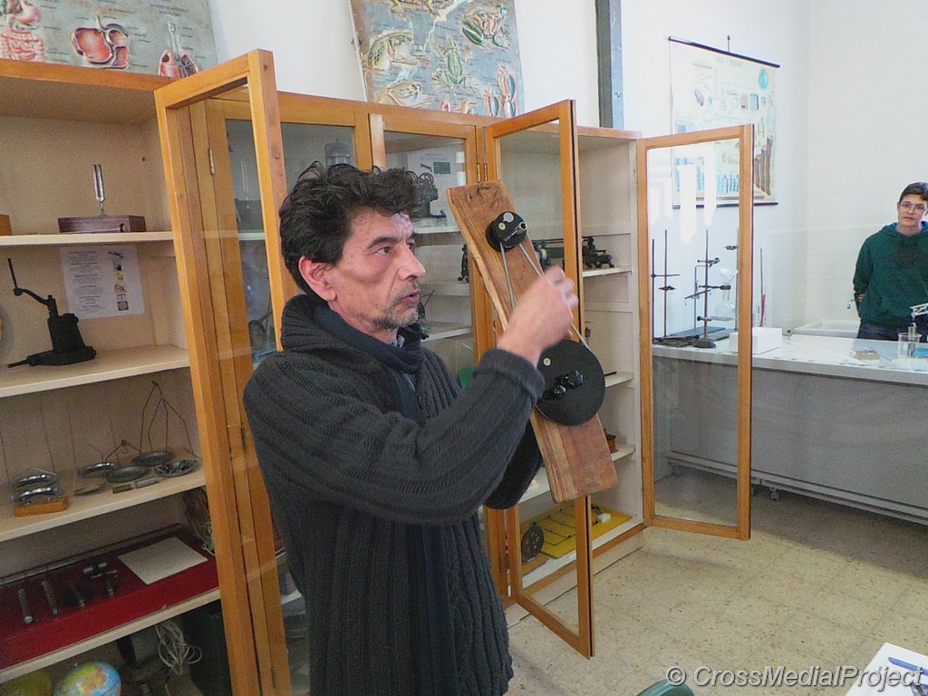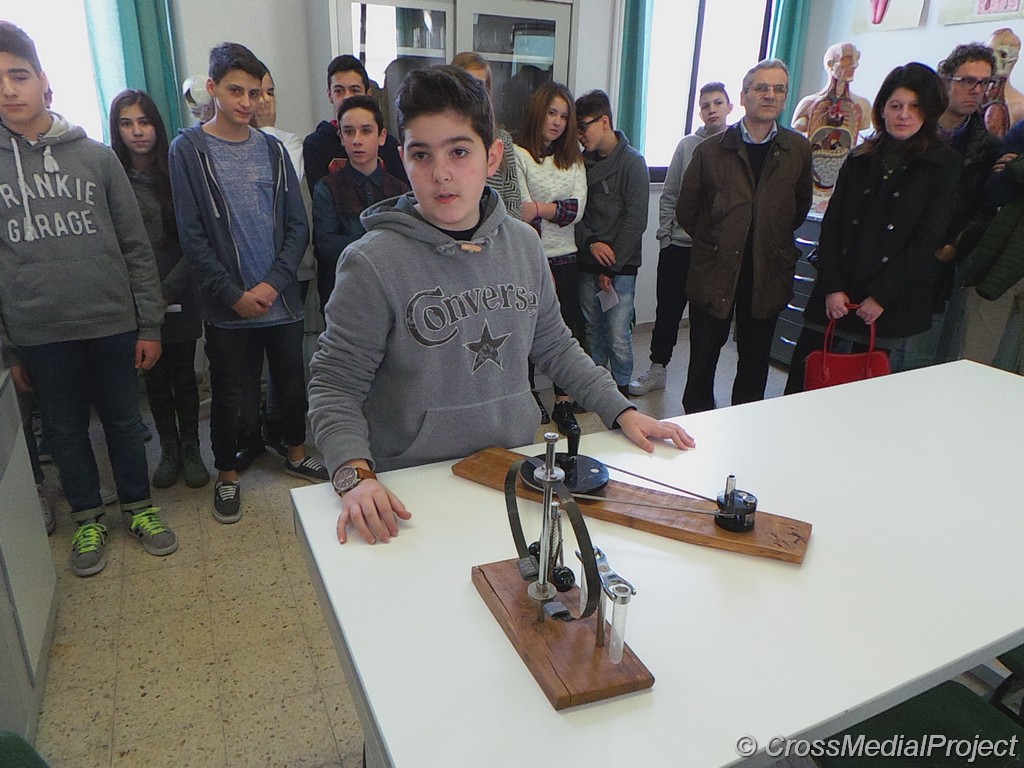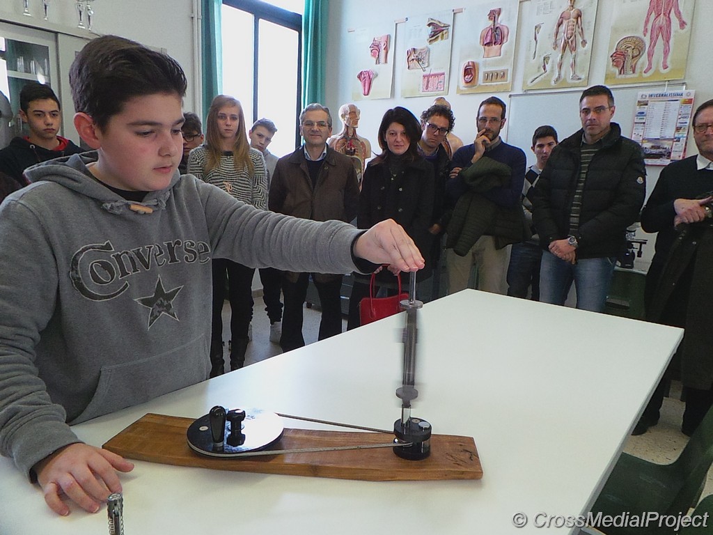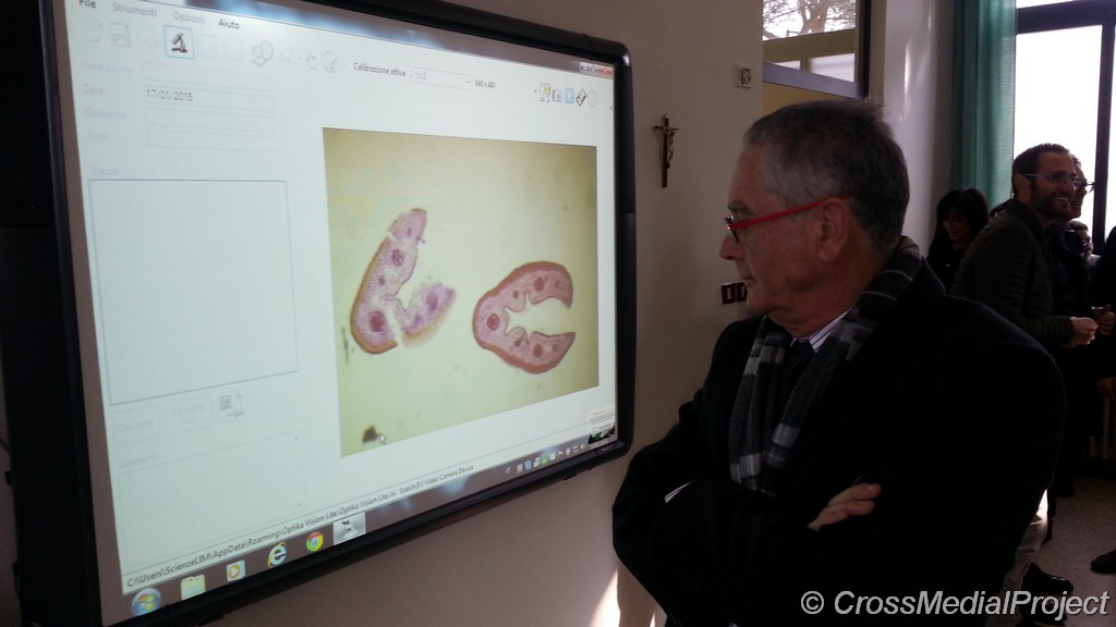 Il laboratorio esisteva già quindi, ma non nello spazioso locale inaugurato questa mattina. “Abbiamo cominciato a lavorare all’inizio dell’anno per raccogliere e mettere insieme tutto – spiega con legittimo orgoglio il professor Oreste Rinaldi – non posso dirle il numero dei pezzi che abbiamo, ma sono tantissimi. Con i colleghi abbiamo cercato di sistemare il tutto. Io ho anche una passione grande ed è quello di rimettere in funzione e a posto gli strumenti e parti anatomiche”. Ci fa vedere subito un fegato umano. “L’ho rincollato – dice – ma vorrei riportarlo alla forma originale. Voglio ridare vita a quei pezzi e testimonianze di scienza che non si utilizzano più”. Fisica dei fluidi, non si potrà fare più di tanto per la chimica per questioni di dotazioni relative alla sicurezza, si userà moltissimo il settore dedicato allo studio della tensione elettrica, i pesi, la rotazione, l’Universo, molto la matematica, la geologia. “Molte degli indirizzi – spiega il professore – sono anche in relazione alle capacità del singolo docente. Io sono geologo per esempio, mentre i miei colleghi sono più biologi”. Fa bella mostra di sè anche un microscopio collegato ad una lavagna interattiva. “Sì – conferma il professor Rinaldi – abbiamo diversi vetrini, abbiamo parecchio materiale da vedere, tessuti vegetali e animali”. Alcuni studenti e alcune studentesse si sono poi cimentati in alcuni esperimenti. “Sì – dice il docente – anche quello più semplice, magari realizzato con l’acqua, ha il suo fascino. Vedere come la pressione di questo elemento faccia variare la pressione, basta anche questo per dare entusiasmo”.