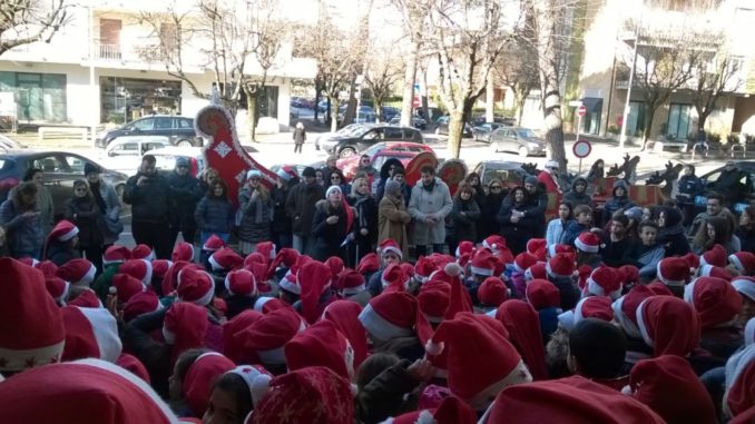 BASTIA UMBRA – Un trenino guidato da Babbo Natale messo a disposizione dal Centro Sociale di Borgo I Maggio, seguito da un corteo di tutti i bimbi della primaria Umberto Fifi, ha attraversato la città di Bastia intonando i canti di Natale. Dal centro storico, dove al piccolo concerto erano presenti anche diversi genitori, i piccoli cantori, hanno raggiunto la Scuola Media, dove ai canti natalizi si è aggiunta l’orchestra di flauti diretta dal professor Carlo Abbati, che nel pomeriggio ha tenuto un concerto itinerante per le strade di Santa Maria degli Angeli e Bastia. Il trenino e la moltitudine di berretti rossi hanno attirato molti curiosi che hanno seguito emozionati, i bambini, che lasciano sempre un messaggio di speranza e gioa. Il percorso è stato anche seguito dalla dirigente Professoressa Stefania Finauro.
