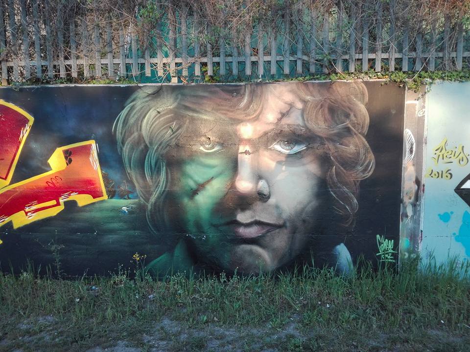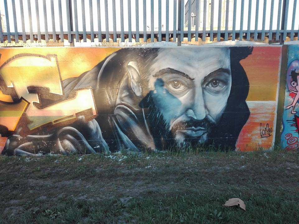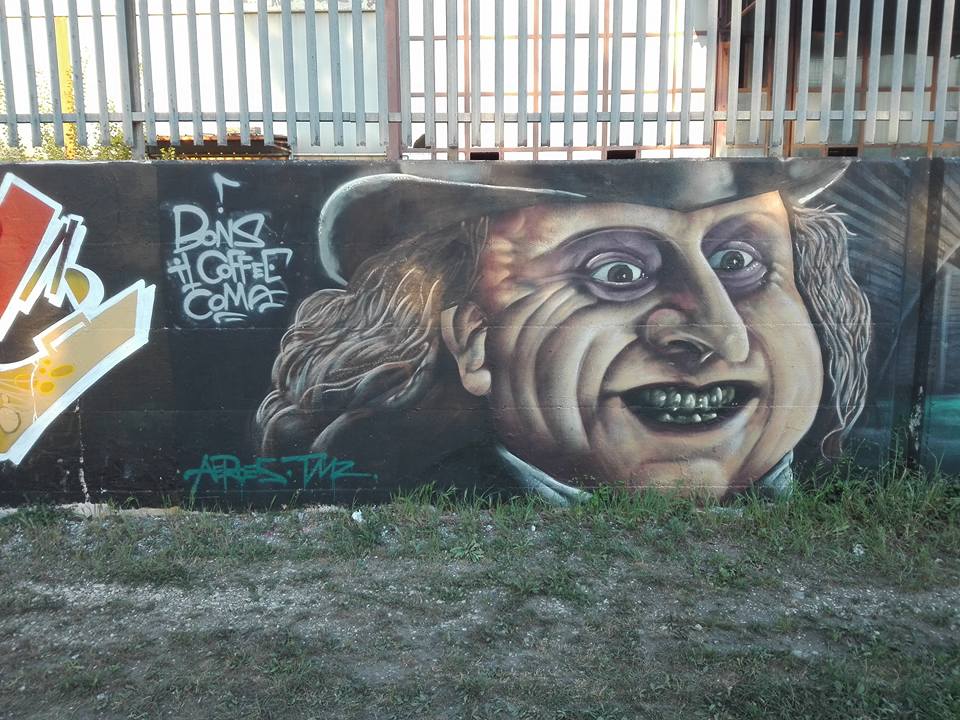 Un writer che si firma “COFFEE TRASHMASTERZ” ha regalato a Bastia Umbra alcune opere decisamente di rilievo per la singolare difficoltà realizzativa. Volti celebri delle fictions e dei film, personaggi sportivi storici ed una eccellente riproduzione del “San Girolamo scrivente” del Caravaggio. Questa persona merita un plauso ed un nuovo invito ad abbellire le medesime od altre zone della nostra cittadina (chiaramente sempre rispettando i luoghi ove sia possibile questa pratica). Potete visionare questi splendidi volti lungo la “Rivierasca”, sotto il ponte di Santa Lucia.