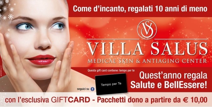 VillaSalus, medical skin & antiaging center si fa portavoce di una nuova idea di salute e BellEssere che parte da momenti da dedicare a noi stessi e a chi amiamo a portata di dono di Natale, con offerte a partire da 10 euro ed esclusive GIFT CARD.