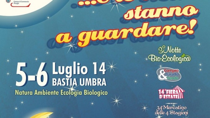 Bastia Umbra si fa “green” tra divertimento, spettacolo e shopping con “…E le stelle stanno a guardare”, la due giorni di festa in programma nel centro storico di Bastia Umbra per sabato 5 e domenica 6 luglio 2014. L’evento, giunto alla quarta edizione, è organizzato dal consorzio Bastia Umbra City Mall in collaborazione con la Confcommercio e l’amministrazione comunale.