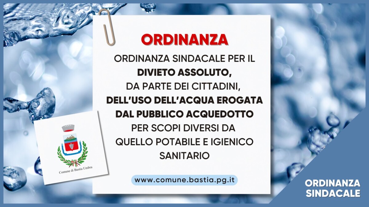 In risposta alla crescente preoccupazione per la gestione dell’acqua durante la stagione estiva, il Sindaco ha emesso un’ordinanza che limita l’uso dell’acqua erogata dal pubblico acquedotto. Questa misura è stata presa per garantire che l’acqua rimanga disponibile per l’uso domestico e igienico-sanitario.
