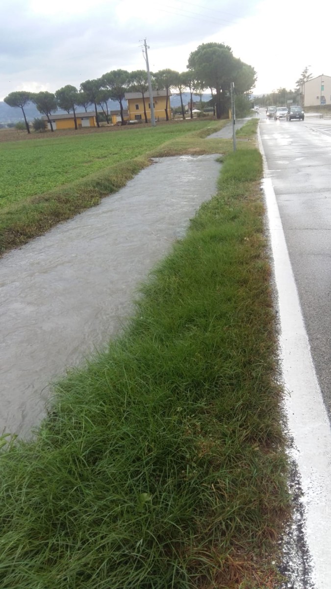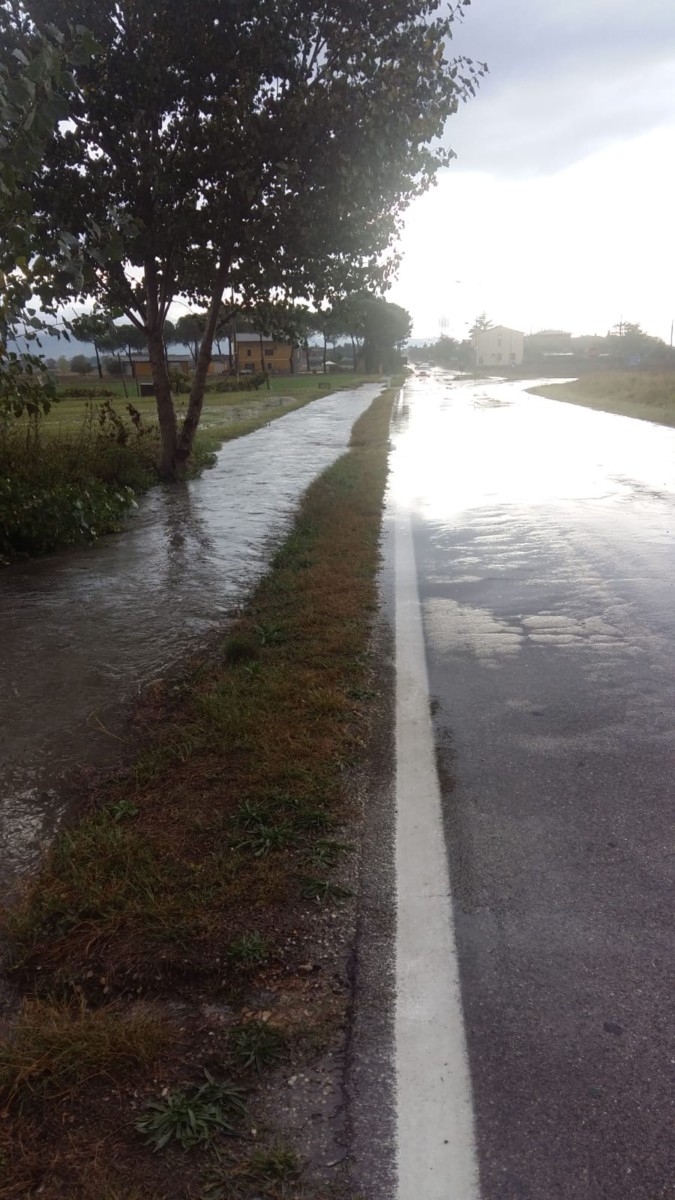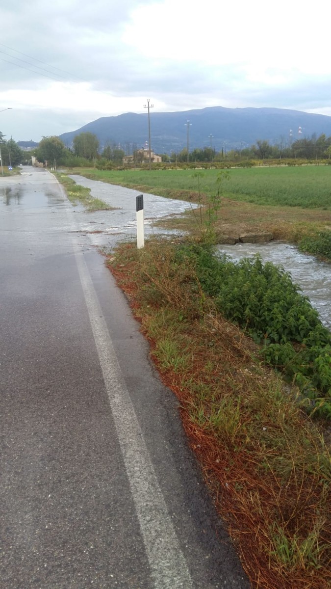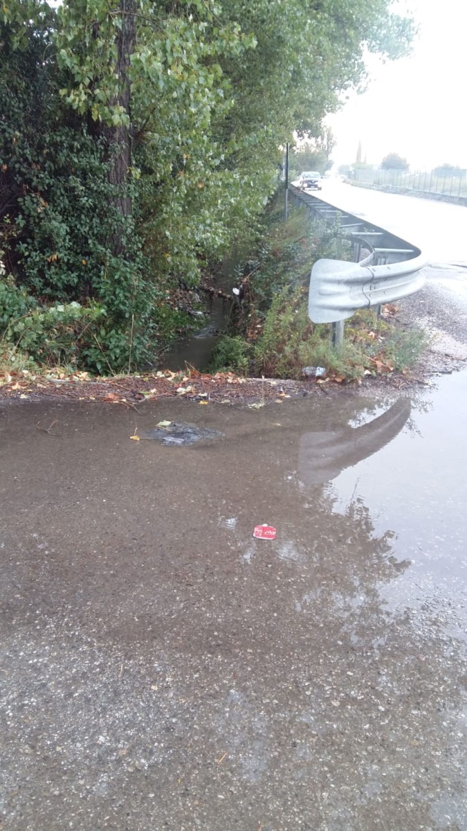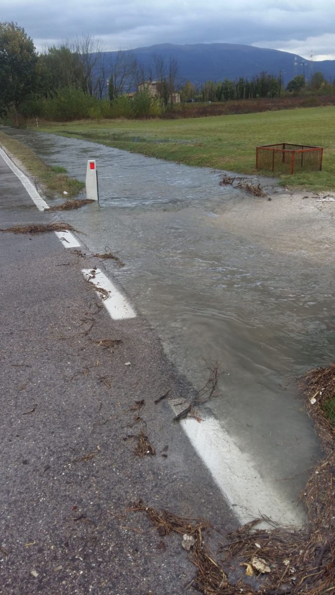 Per capire meglio date uno sguardo alle fotografie, la strada è, praticamente, allagata. Dal fossato l’acqua è finita sulla strada, sulla via che – tra Bastia e Santa Maria degli Angeli – porta a Costano.