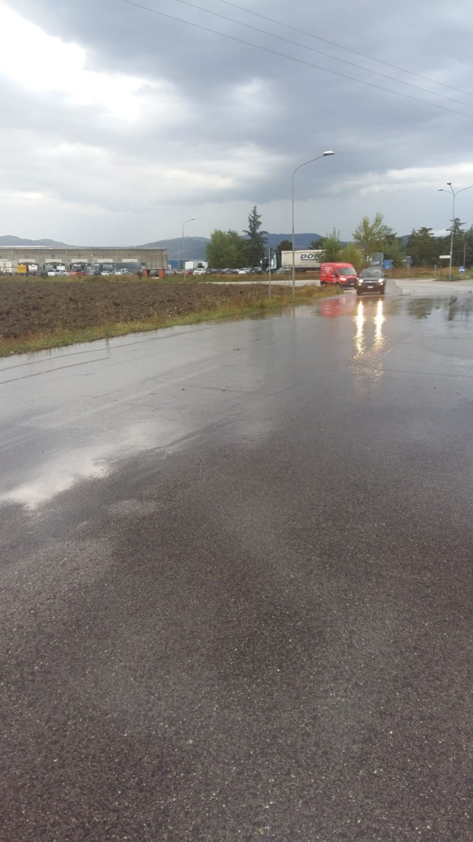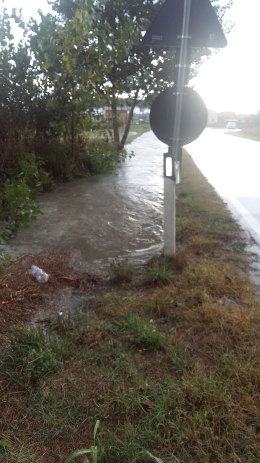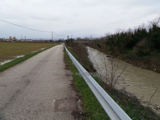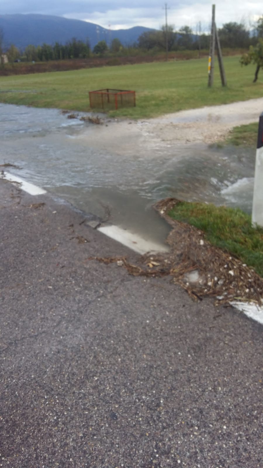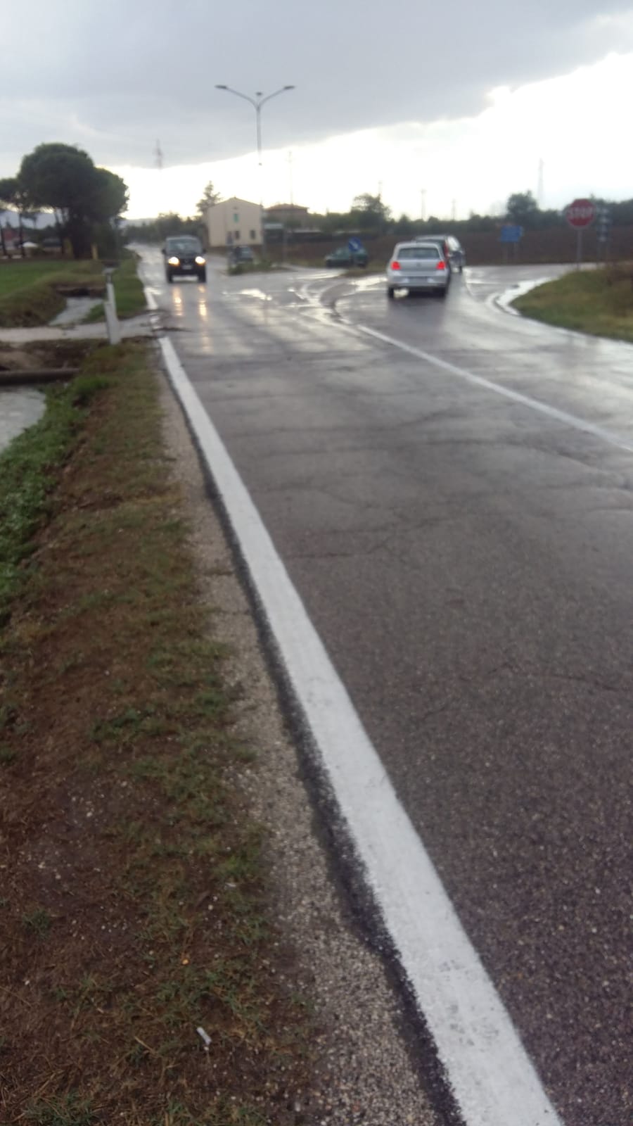 Per capire meglio date uno sguardo alle fotografie, la strada è, praticamente, allagata. Dal fossato l’acqua è finita sulla strada, sulla via che – tra Bastia e Santa Maria degli Angeli – porta a Costano.