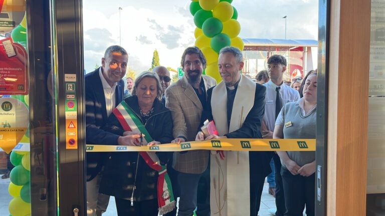 Bene, siamo contenti; E’ arrivato il giorno di inaugurazione del McDonald’s, un’altra attività commerciale quella che per Bastia è una delle tante assolutamente, ma un’aggiunta a quello che può rappresentare quindi la possibilità di avere un’attività ristorativa, un’attività attrattiva, un’attività simpatica com’è questa che è stata qui organizzata, con l’area giochi, i bambini, una cosa molto interessante; con un interno innovativo moderno, veramente attrattivo. Siamo contenti. Siamo qui, non solo come aspetto piacevole, ma come dovere da parte di un’amministrazione di accogliere con grande onore, con grande affetto, tutte le attività che possono rendere complessivamente la nostra realtà territoriale, un attrattore a tutto tondo, a tutto campo.