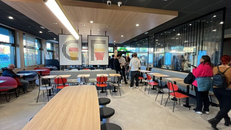 Con 244 posti a sedere – sia all’interno che all’esterno – il ristorante offrirà ai clienti la possibilità di utilizzare i kiosk digitali per ordinare in modo personalizzato, modificando gli ingredienti e le quantità delle pietanze. I clienti potranno attendere comodamente mentre il personale di McDonald’a consegnerà i loro ordini direttamente.