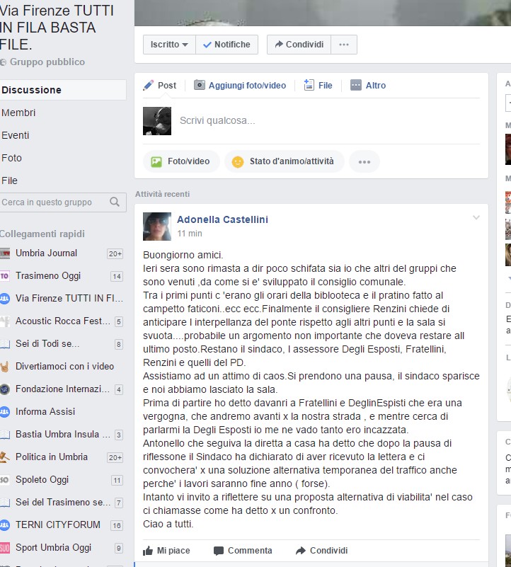 Antonello (il marito ndr), che seguiva la diretta a casa ha detto che dopo la pausa di riflessone, il Sindaco ha dichiarato di aver ricevuto la lettera e ci convocherà per una soluzione alternativa temporanea del traffico anche perché’ i lavori saranno fine anno (forse).