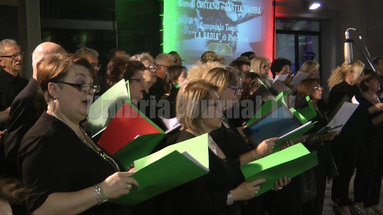 In piazza la Banda Musicale di Costano, diretta dal Maestro Giuseppe Cecchetti, con loro numerosi cori, c’era il Coro Città di Bastia, Coro di Costano, Coro ControCanto di Bettona, Coro Amici de le Montagne Aldo Sisani Perugia, Coro Lions Perugia e la Compagnia Teatrale La Badia di Pietrafitta.