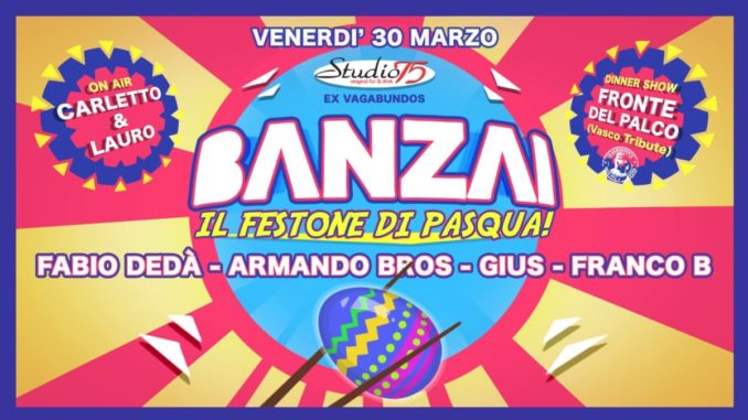 BASTIA UMBRA – Una di quelle feste inusuali ma significative. Per data, per location e per le persone coinvolte nella realizzazione. Un vero e proprio evento rivolto a tutto il pubblico della nightlife e non solo. Venerdi 30 Marzo alla Discoteca Studio75 – Ex Vagabundos ( Bastia Umbra ), arriva Banzai – Il Festone di Pasqua.