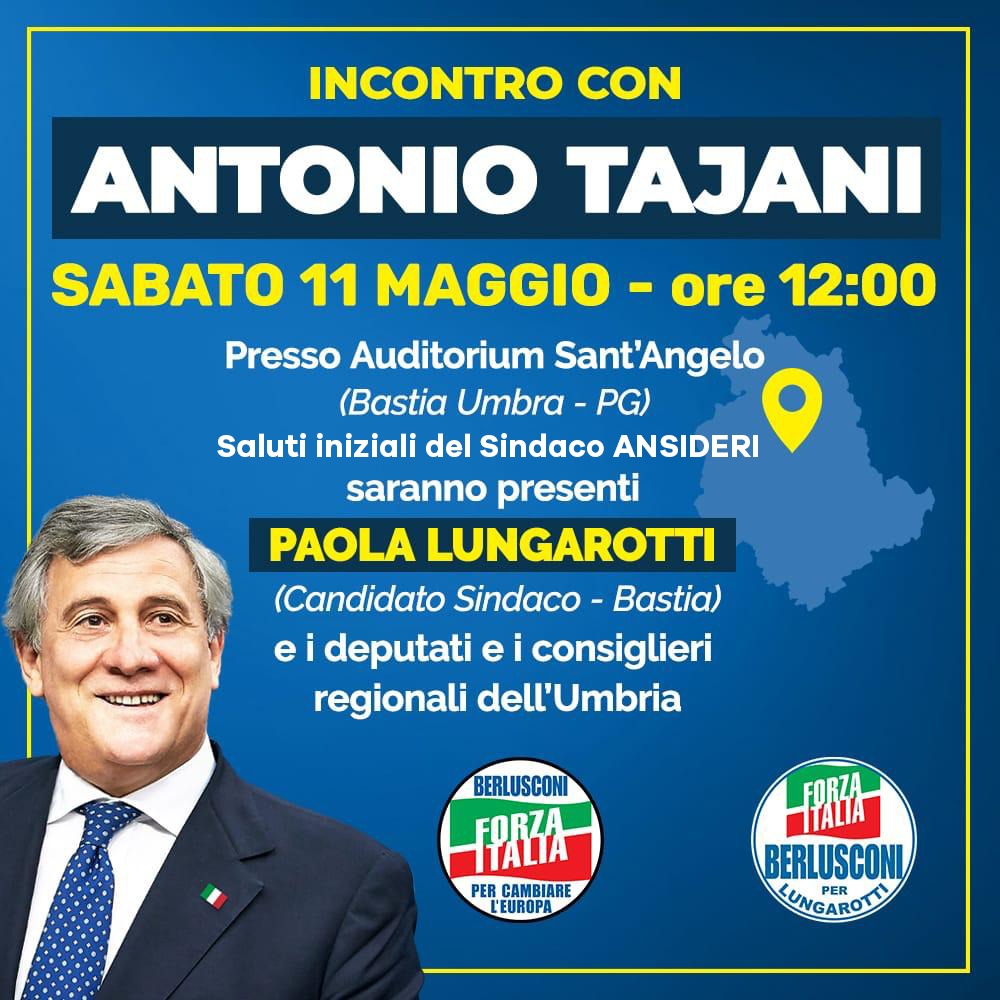 Antonio Tajani, Forza Italia, sarà in Umbria, anche a Bastia a Caccia Village