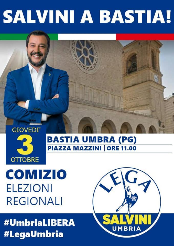 Matteo Salvini a Bastia Umbra, il leader Lega arriverà il 3 di ottobre