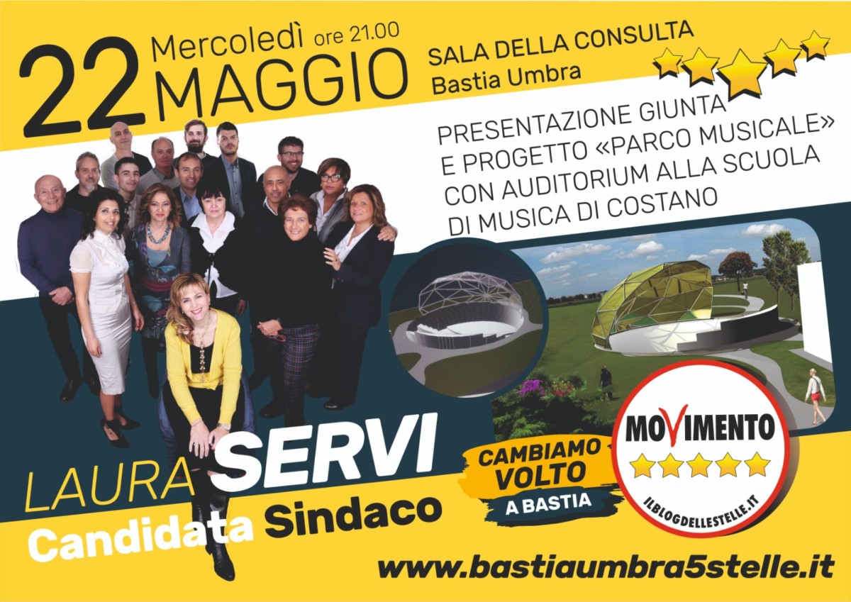 Mercoledì 22 maggio 2019 alle ore 21 presso la sala della Consulta del Comune di Bastia Umbra, il Movimento 5 Stelle presenterà la propria squadra di giunta con la quale intende governare la città. L’obiettivo è quello di offrire alla cittadinanza la rappresentazione completa della squadra con la quale il M5S intende condurre la propria azione di rinnovamento del nostro comune, coinvolgendo i cittadini e ascoltandoli.