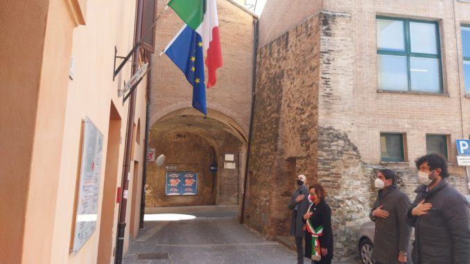 Il Sindaco Paola Lungarotti, il Presidente del Consiglio Comunale e gli Assessori, riuniti sotto la Bandiera con il nastro nero in segno di lutto, in concomitanza all’arrivo a Bergamo del Presidente del Consiglio dei Ministri Mario Draghi hanno osservato un minuto di silenzio per ricordare, per la nostra comunità, per la nostra Italia ancora fortemente provata da questa triplice emergenza sanitaria, economica e sociale.