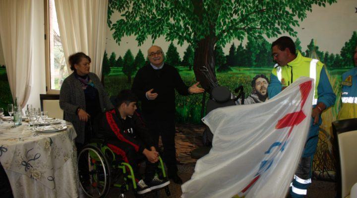 Grazie alle offerte di tanti cittadini, i volontari della Misericordia e le attività commerciali, è stato possibile acquistare e consegnare un trattorino montascale a Clarens, un ragazzo di 16 anni di Bastia Umbra. Il trattorino gli permetterà di salire e scendere le scale, senza essere preso su di peso dai genitori.