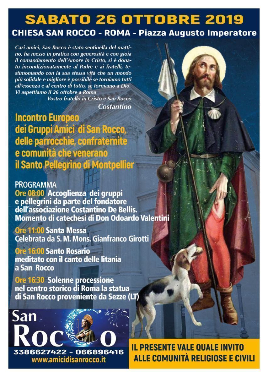 Amici cari , con avvincente entusiasmo INVITO A CONDIVIDERE CON NOI L’INCONTRO EUROPEO IN ONORE DI SAN ROCCO