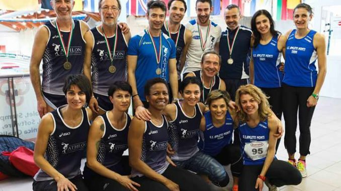 Master D’oro per l’Associazione Sportiva Athlon di Bastia BASTIA UMBRA – Ancora successi per l’Associazione Sportiva Athlon di Bastia , che chiude in bellezza la Stagione Indoor , ricca di soddisfazioni per i nostri colori . Nell’ultimo week end di Febbraio , tocca agli atleti over 35 , i quali , nel corso dei Campionati Italiani a loro riservati , lasciano il segno sia al maschile che al femminile , vincendo numerose medaglie d’oro e piazzandosi nei primi tre gradini del podio in altre specialità del programma atletico . Plurimedagliato il 70 enne Carlo Muletti , che , sempre incline alle pluripartecipazioni , anche in alte occasioni agonistiche , si impone nel lancio del peso con metri 11,15 e nel lancio del giavellotto ( che si disputa nel campo all’aperto attiguo al Palaindoor ) , con metri 34,79 , mentre conquista l’argento nel lancio del martello con maniglia , con la misura di 13,59 .