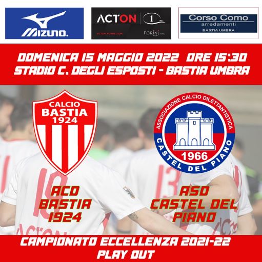 La vincente sfiderà il Lama, al Polchi Laurenzi, domenica 22 maggio. In finale due risultati su tre per il Lama. Bastia-Castel del Piano e Angelana-Ducato Spoleto le due semifinali playout. Due risultati su tre per Bastia e Angelana. Chi perde retrocede in Promozione, chi passa il turno accede all’ulteriore spareggio. Bastia-Castel del Piano arbitra Scifo di Nuoro, assistito da Ben Boubaker e Costantini di Foligno. Angelana-Ducato Spoleto si gioca allo Spoletini di Cannara per l’indisponibilità del Migaghelli di Santa Maria degli Angeli, occupato per il Trofeo Città di Assisi. Arbitra Ravara di Valdarno, assistito da Servili e Proietti di Terni.