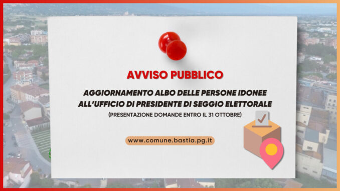 Aggiornamento albo per Presidenti di seggio elettorale a Bastia Umbra Il Comune di Bastia Umbra [Leggi l'articolo]