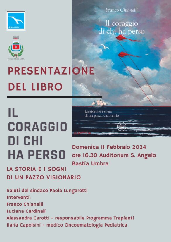 Il libro scritto dal presidente e fondatore del Comitato per la vita “Daniele Chianelli” sarà presentato domenica 11 febbraio alle 16.30 presso l’Auditorium Sant’Angelo dal titolo “Il coraggio di chi ha perso”.